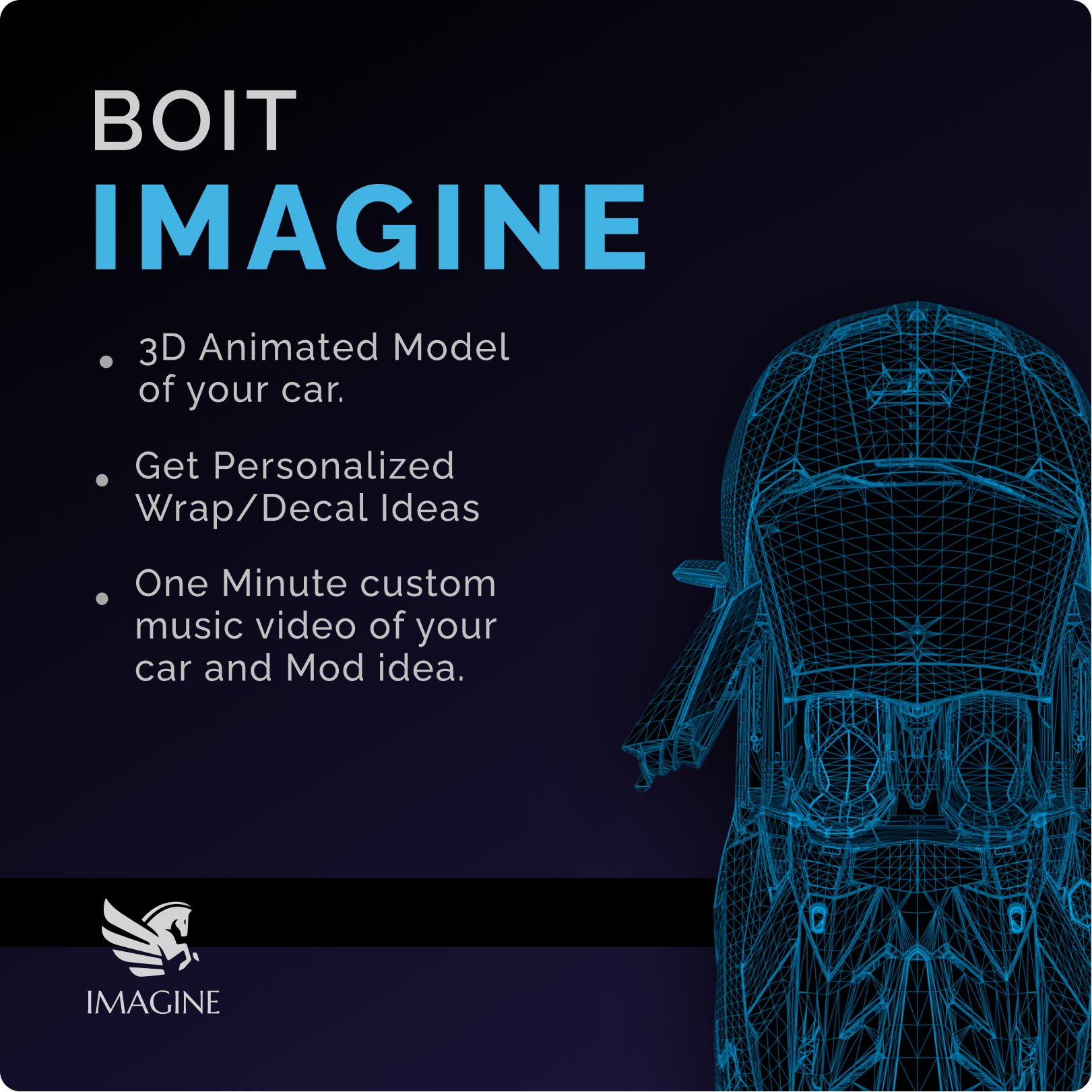 At Boit Imagine, we offer a unique service that allows you to see your dream car come to life. Our team of skilled artists and designers can create custom renderings and animations of your supercar, showcasing your desired upgrades and modifications. With our high-quality 3D rendering service and personalized approach, we strive to provide the best possible experience for our clients. Let us help you bring your dream car to life today.