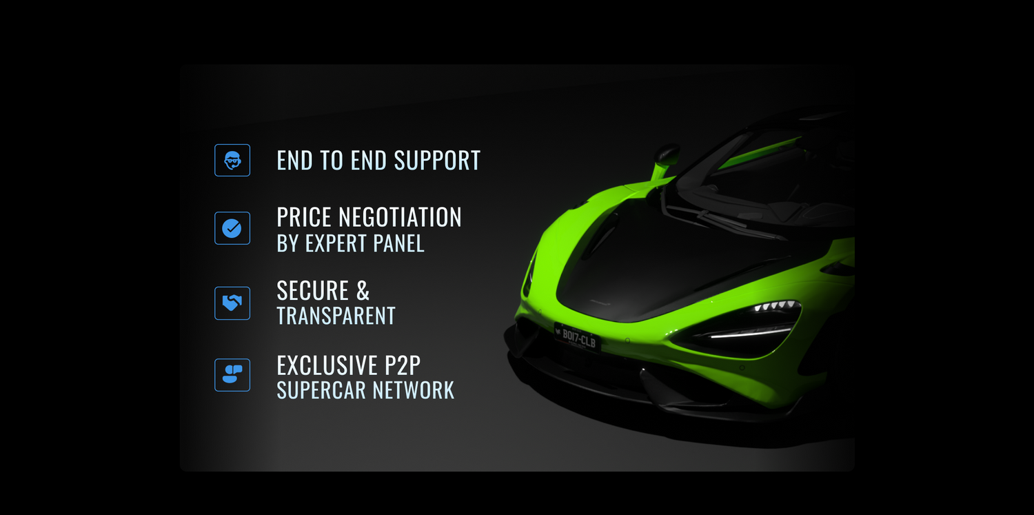 We take pride in offering an exclusive peer-to-peer (P2P) supercar network that connects buyers with supercars including McLarens. Our network provides direct access to off-market McLarens ensuring trustworthy connections for a smooth transfer. But Boit is more than just a marketplace; it's a community of passionate enthusiasts who deeply appreciate the performance, craftsmanship, and innovation of these vehicles. By joining Boit, you not only gain access to a diverse range of exceptional McLaren owners but also have the opportunity to engage, connect, and share experiences with like-minded individuals who share your enthusiasm. Experience the thrill of being part of a community that celebrates the artistry and engineering excellence of these machines, and embark on an extraordinary journey with Boit's exclusive P2P supercar network.